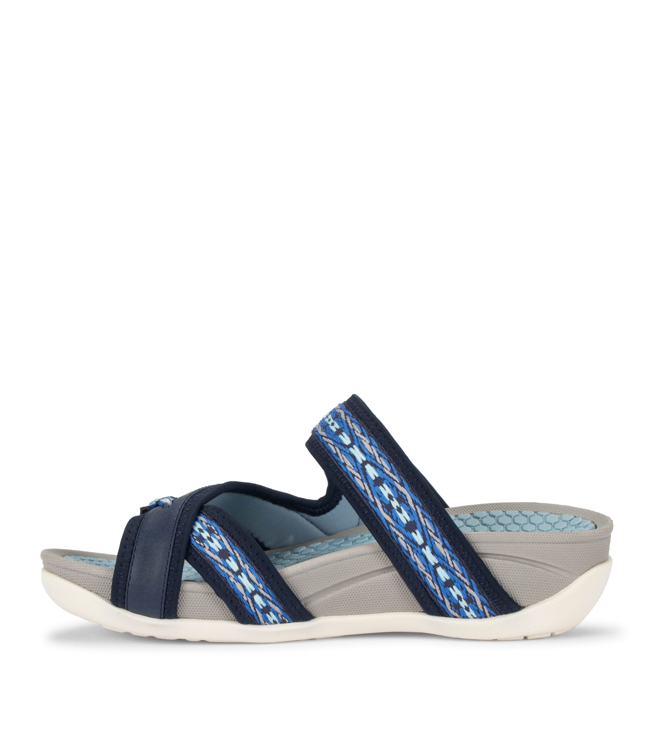 Ready for action!Deserae is a sporty slip-on sandal with all the comfort features you’ve come to expect from a Baretraps sandal.Featuring a hook and loop closure, a hidden wedge, lightweight TPR outsole and our patented Rebound Technology.